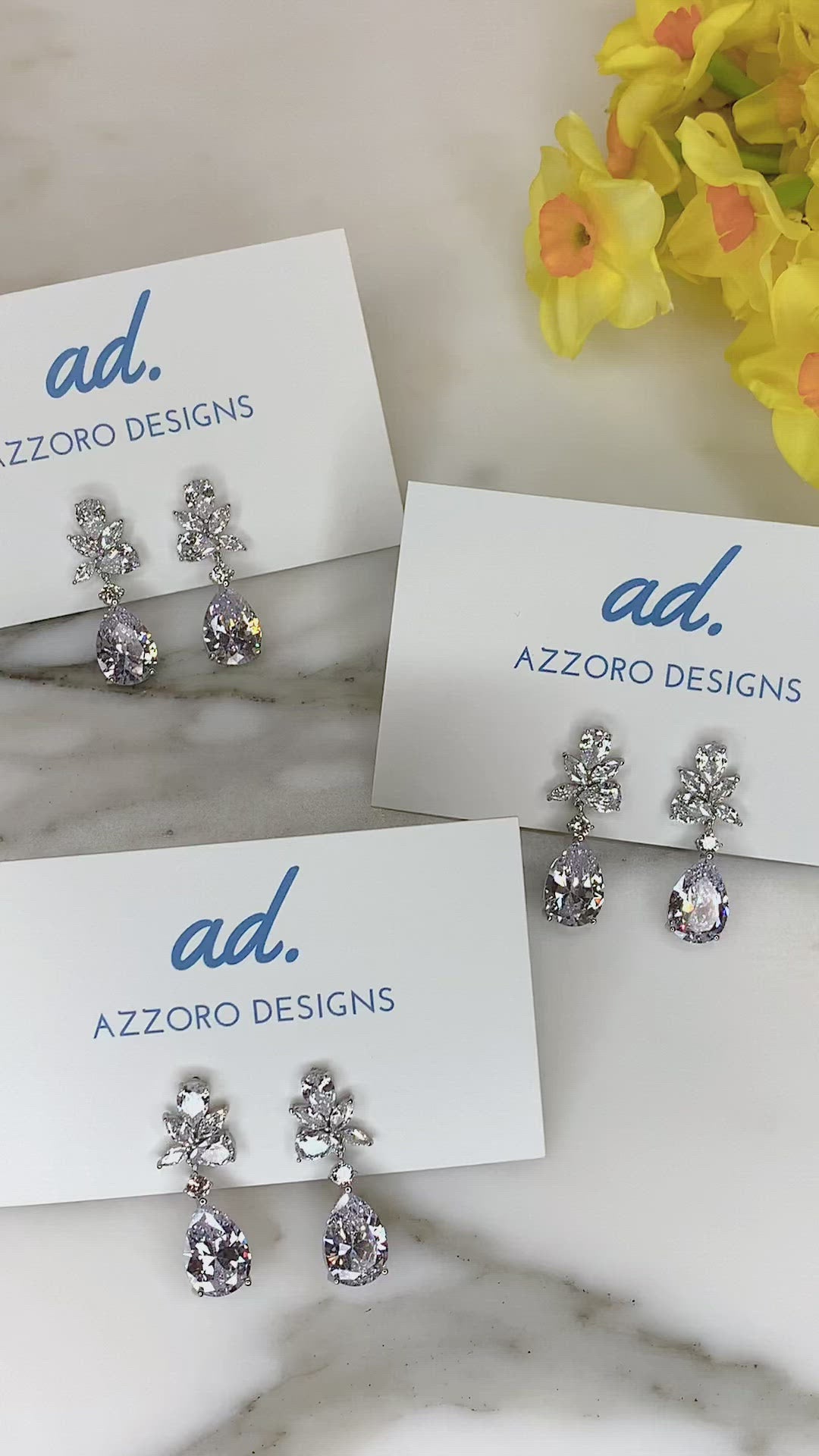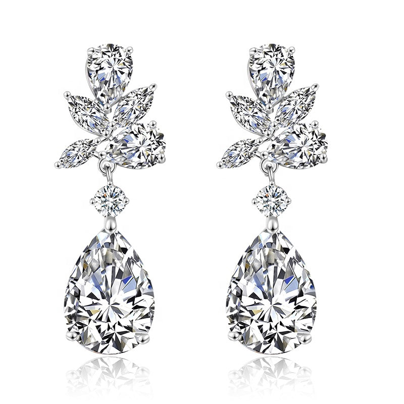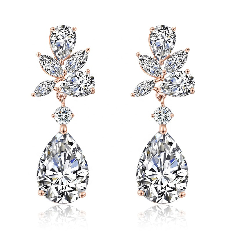 The stand out style in our collection. Truly be the Belle of the ball with these spectacular drop earrings. Featuring an abstract design of pear and marquise CZ stones followed by a dramatic pear stone at the base. Perfect for any evening event or your bridesmaids aka 'I do crew' on your big day.